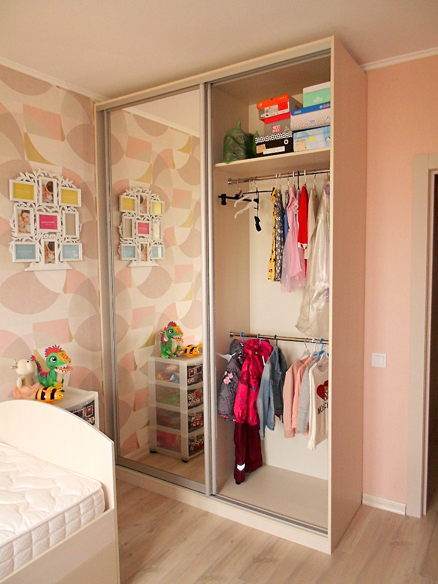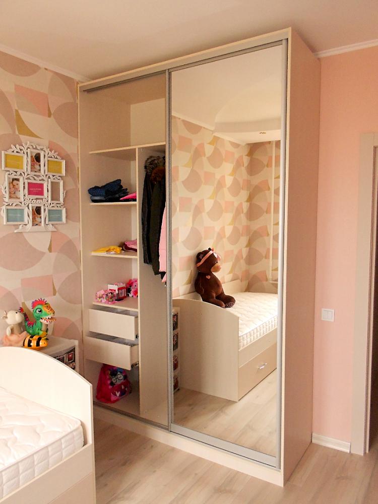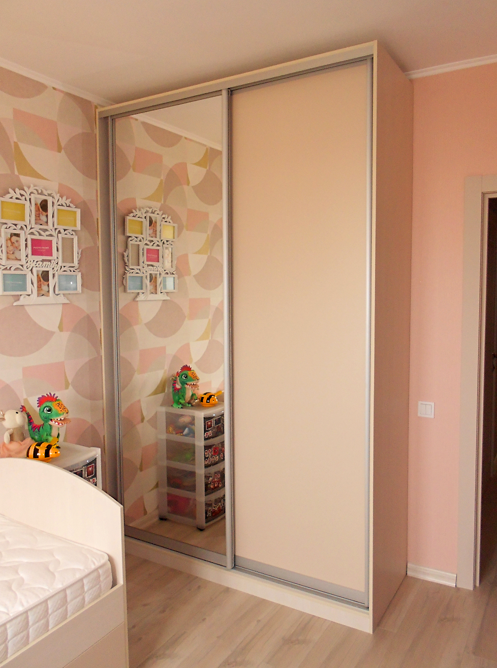 Фасады- купе: Алюминиевый профиль СЕРЕБРО, лдсп ЭГГЕР, зеркало СЕРЕБРО.