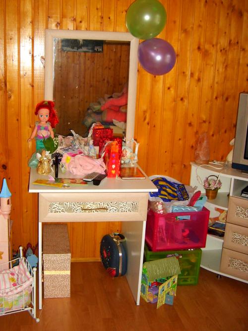 Мебель в комнату девочки. Два шкафа бельевых, подвесная полка, столик с выдвижным ящиком и комод в детскую.
