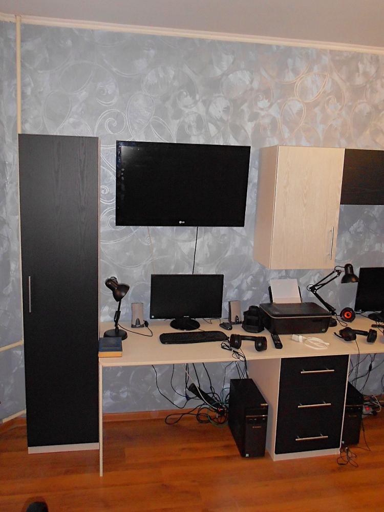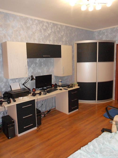 Полноценный комплект мебели для двух мальчиков со всем необходимым для хранения одежды, белья, книг, канц. товаров и прочего. Столы с глубокой столешницей. Достаточно широкие,