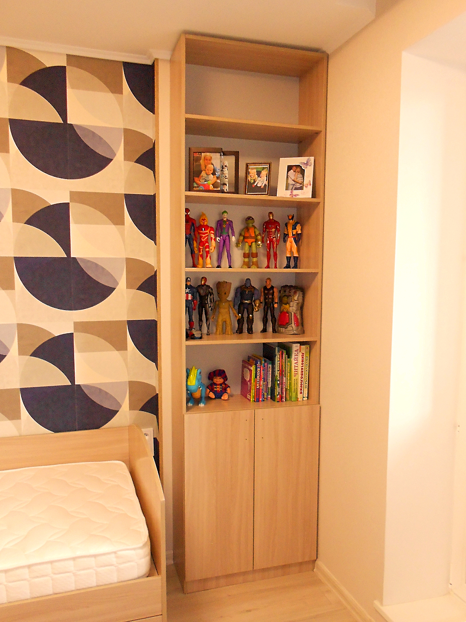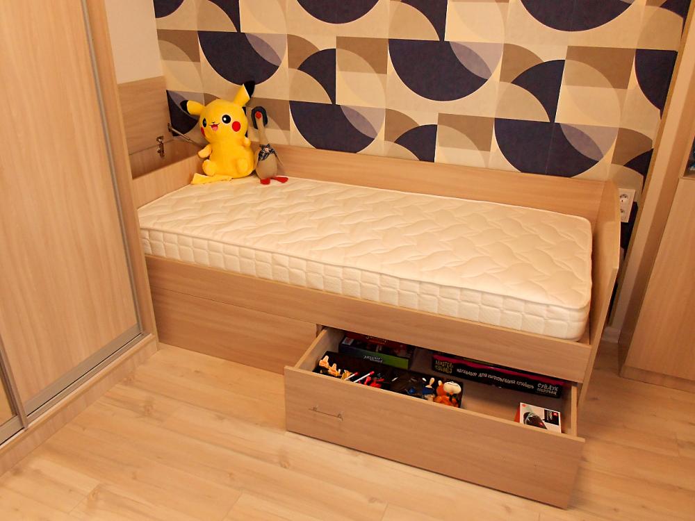 Полный набор мебели в комнату мальчика. Мебель в спокойных тонах. В комплекте есть все для удобного хранения вещей, учебы и отдыха. Кровать оснащена выкатным коробом. В изножье находится тумба для постельного белья. В наполнение шкафа- купе входят штанги для одежды, полки и выдвижные ящики. Рабочий стол с тумбой, подвесными полками и шкафом для книг. ТВ- зона состоит из подвесной тумбы и открытых полочек для фотографий и красивых безделушек.