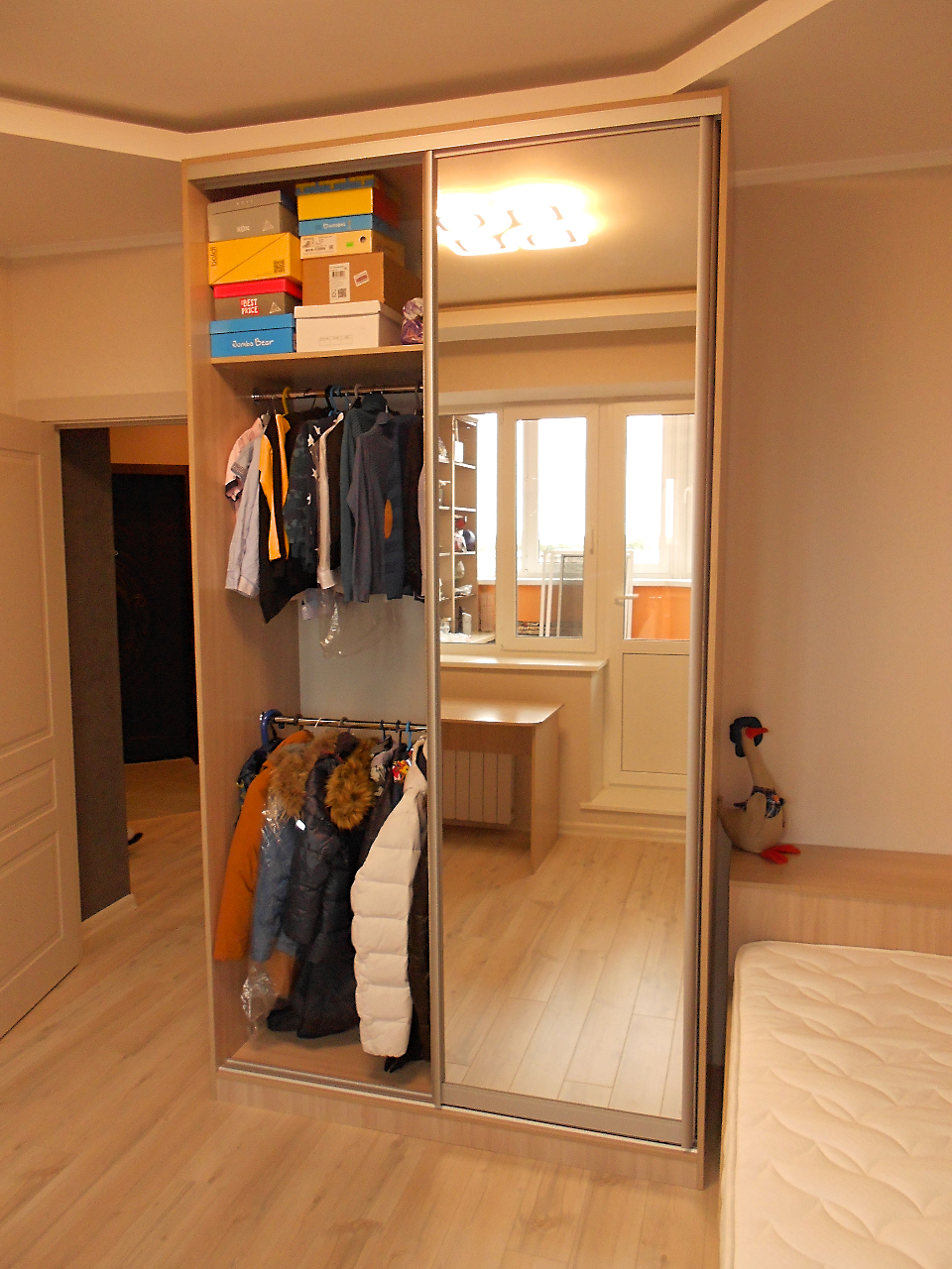 Фасады- купе: Алюминиевый профиль СЕРЕБРО, лдсп российское, зеркало СЕРЕБРО.