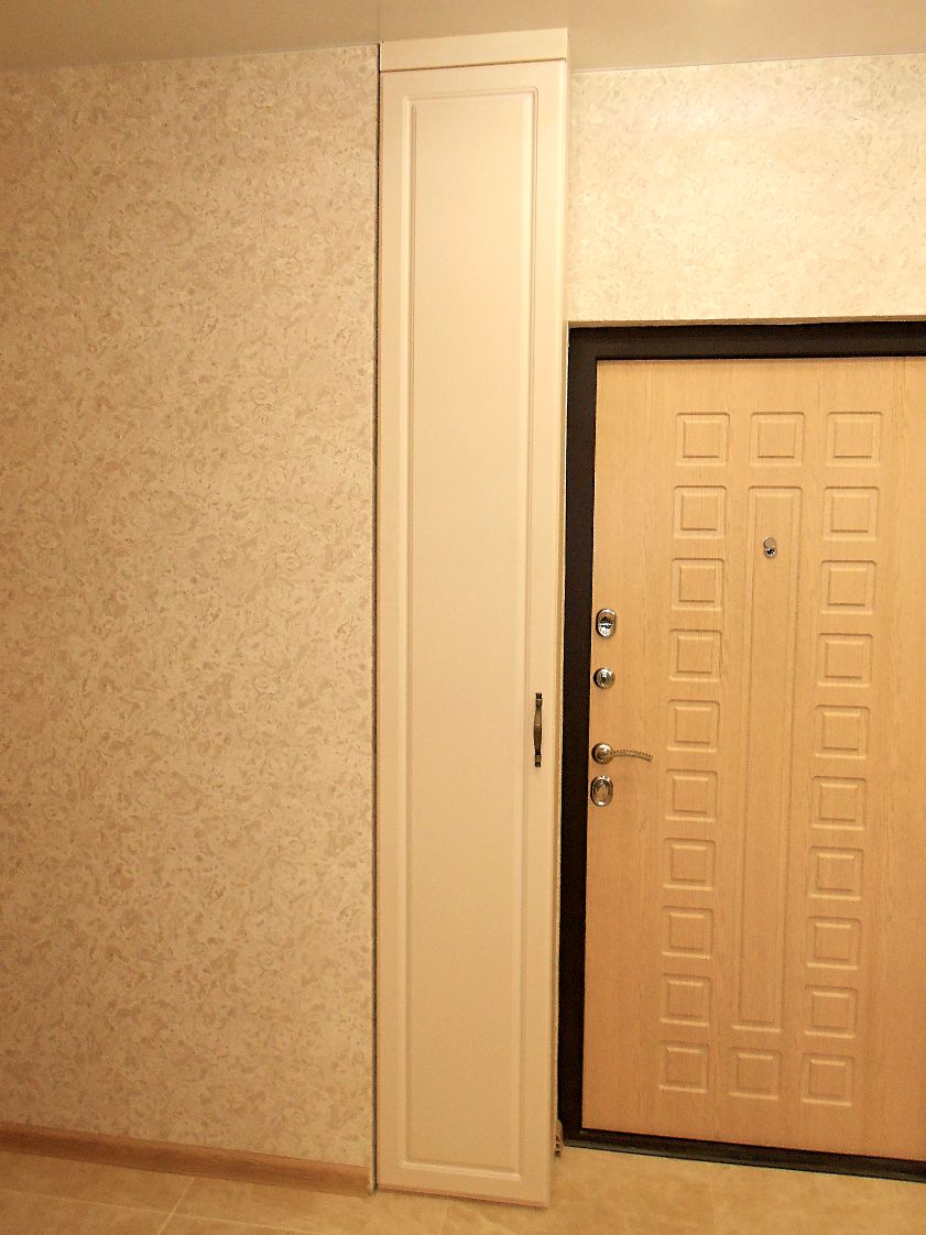 Полувстроенный распашной пенал с фрезеровкой на фасаде
