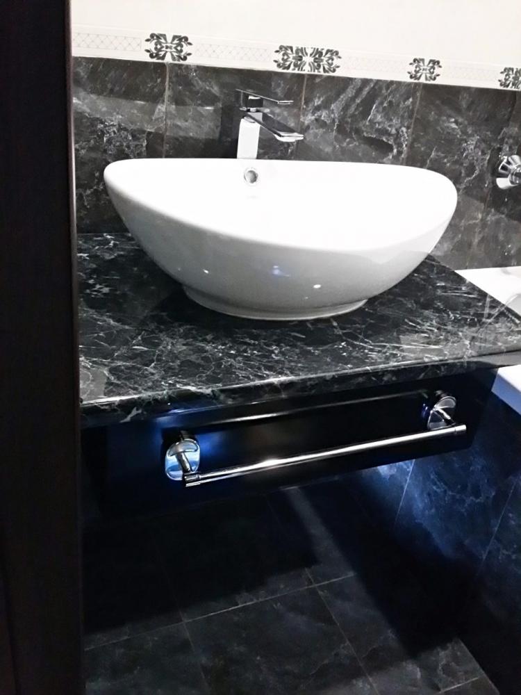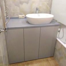 Встроенная тумба в ванную с искусственным камнем и эмалью