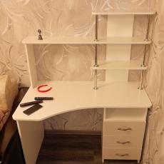 рабочий стол с тумбой, стеклянной и подвесной полками
