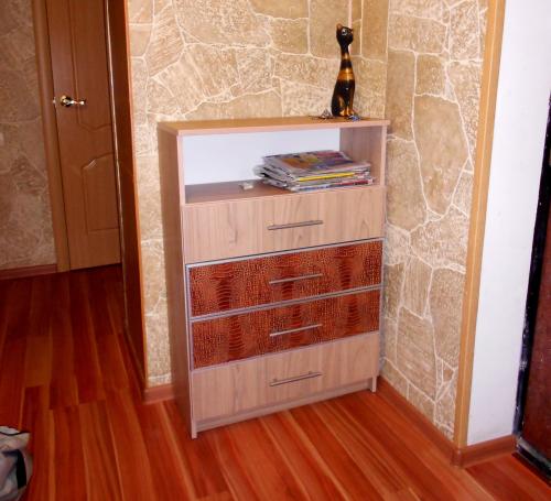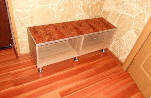 Симпатичные комод и тумба в прихожую. Два центральных фасада ящиков в комоде и крышка тумбы- искусственная кожа. На тумбу можно сесть и комфортно обуться. Фасады выдвижных ящиков: ЛДСП российское, искусственная кожа TEXLAND, алюминиевый врезной профиль. Корпус: ЛДСП российское. Адрес: г. Электросталь, ул. Радио