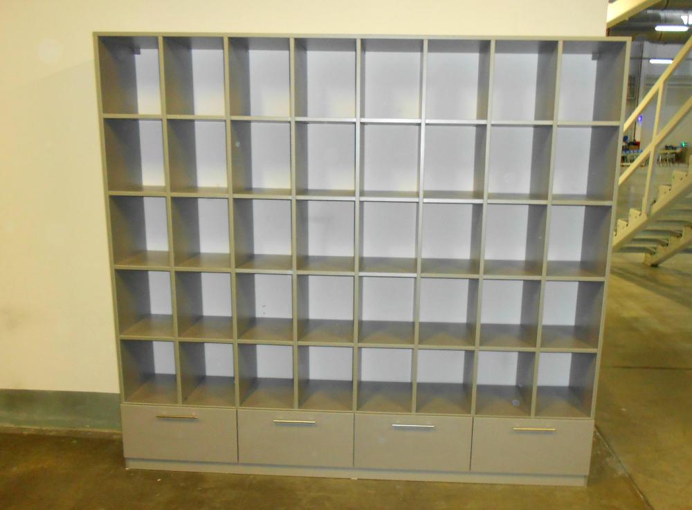 Удобный открытый офисный стеллаж для документов. Множество отдельных ячеек позволит держать бумаги в полном порядке. Нижние ячейки закрыты откидными вниз фасадами. Это защитит документы от пыли.