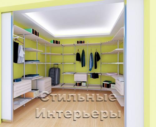 П- образная гардеробная из открытой стеллажной системы Free Style с фасадами- купе.