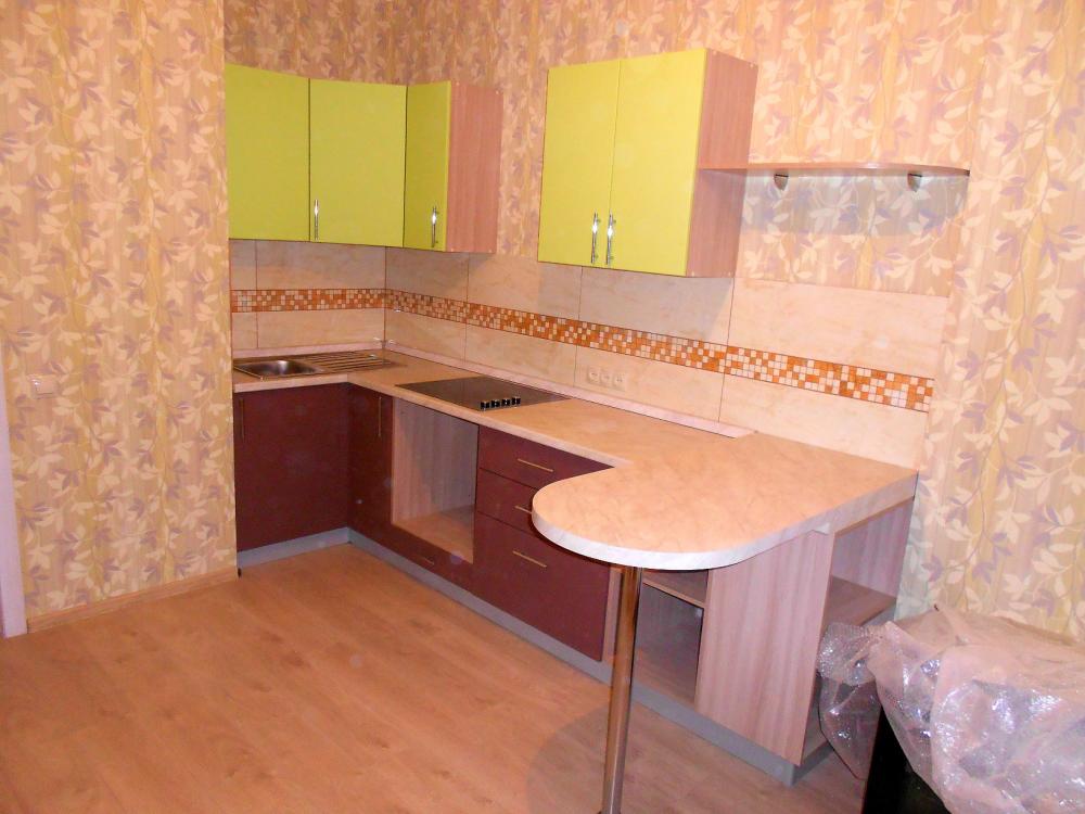 Аккуратная современная угловая кухня со встроенной техникой и барной стойкой. Фасады в пленке супер мат. Этот вид пленки имеет гладкую поверхность, хорошо моется, устойчив к температурам..