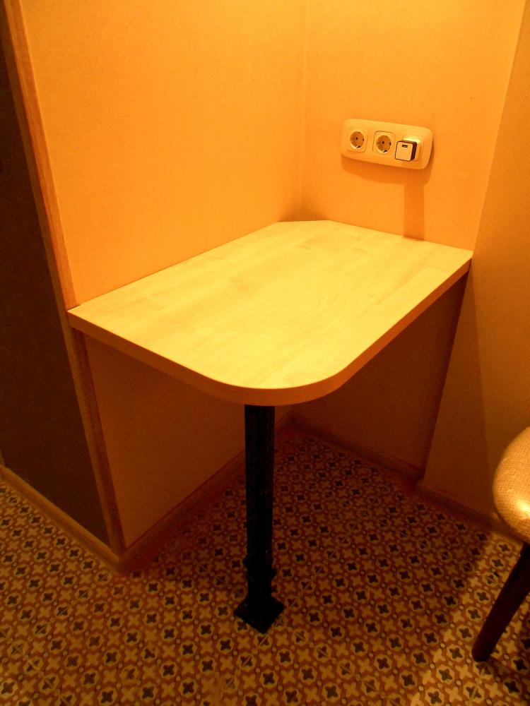 Стол с тумбой и небольшой радиусный столик для ноутбука.