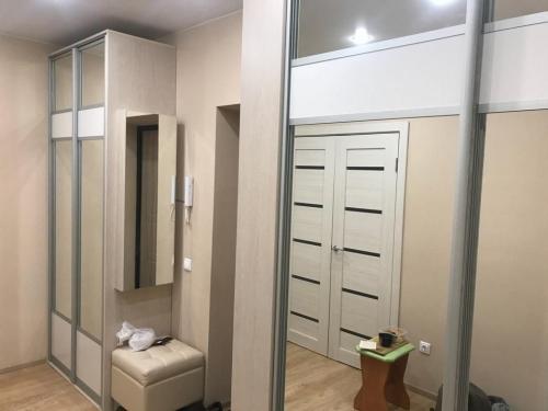 Фасады- купе: Алюминиевый профиль СЕРЕБРО с делителями, ЛСП российское, заркало СЕРЕБРО.