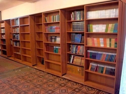 Раздвижная библиотека в офисное помещение. Отсутствие фасадов обеспечивает легкий поиск необходимой книги. Библиотека удобная и недорогая.