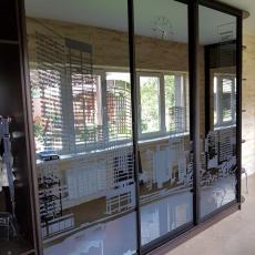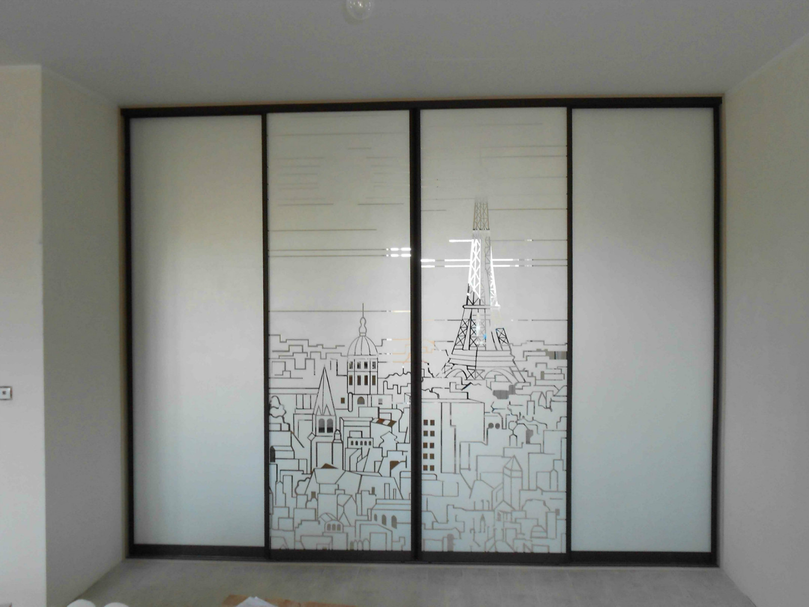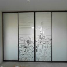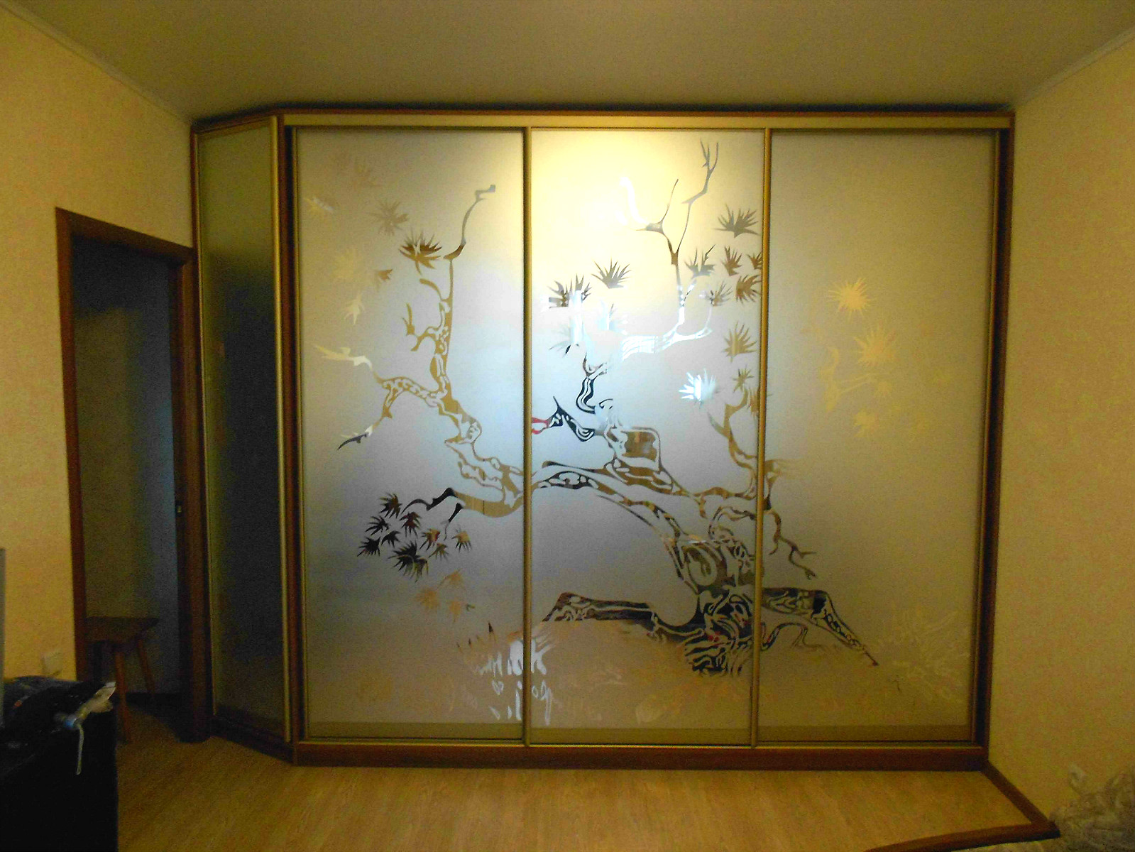 встроенный шкаф-купе с пескоструйным рисунком для гостиной комнаты