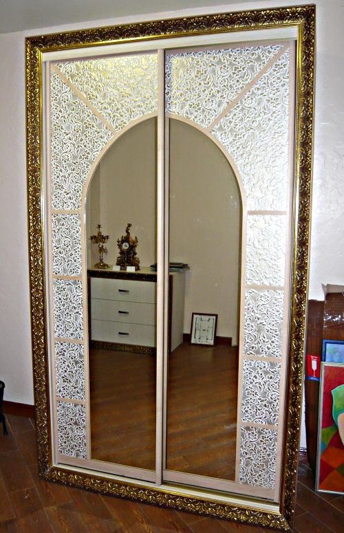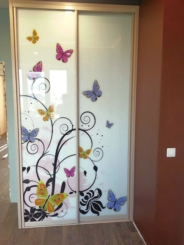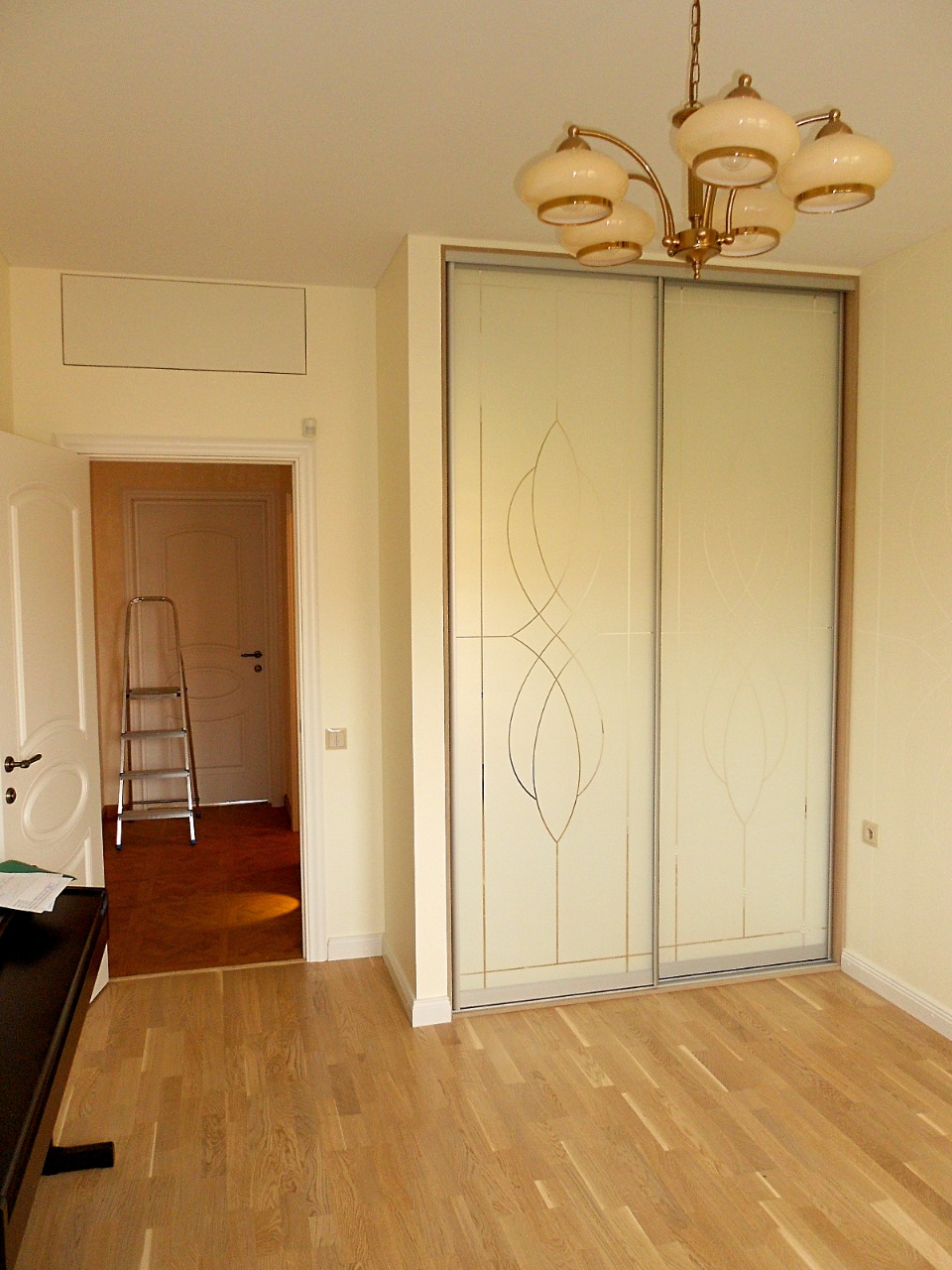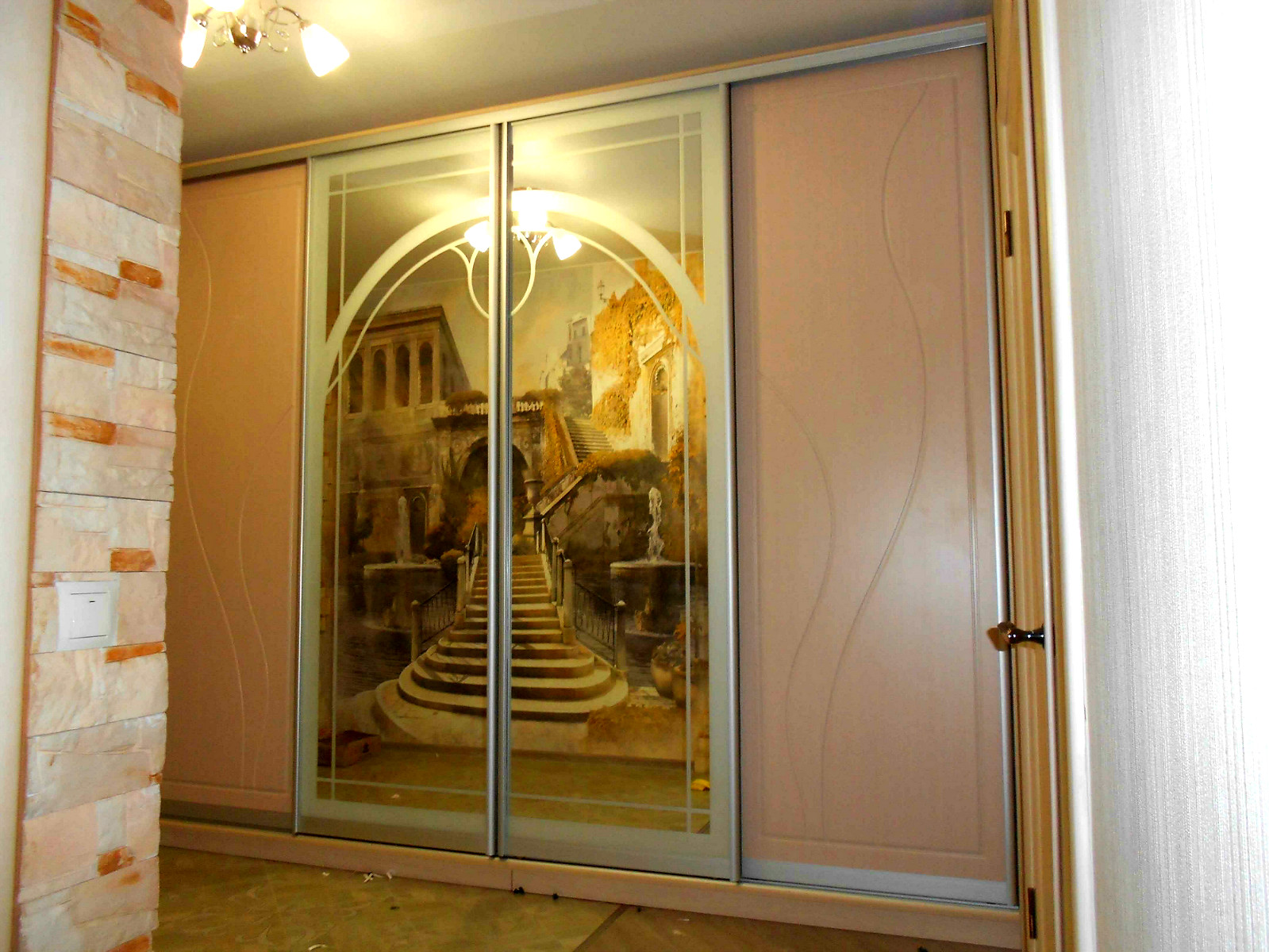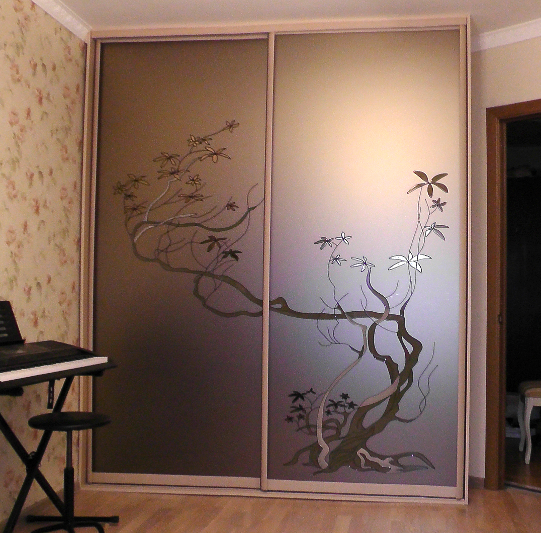 шкаф-купе двух дверный встроенный с пескоструйным рисунком