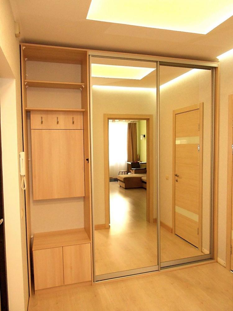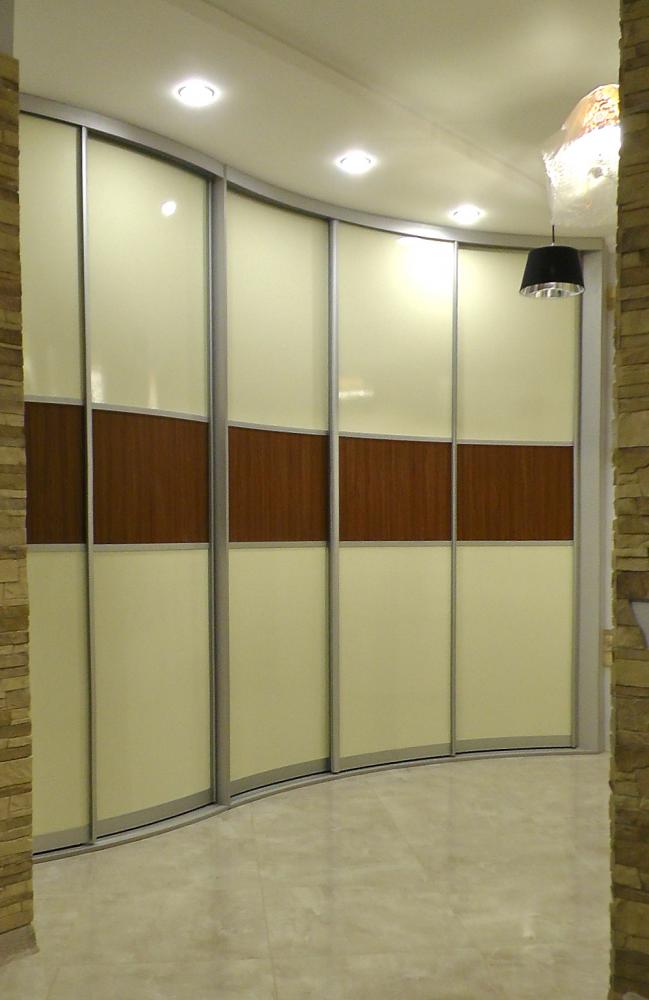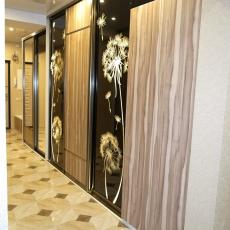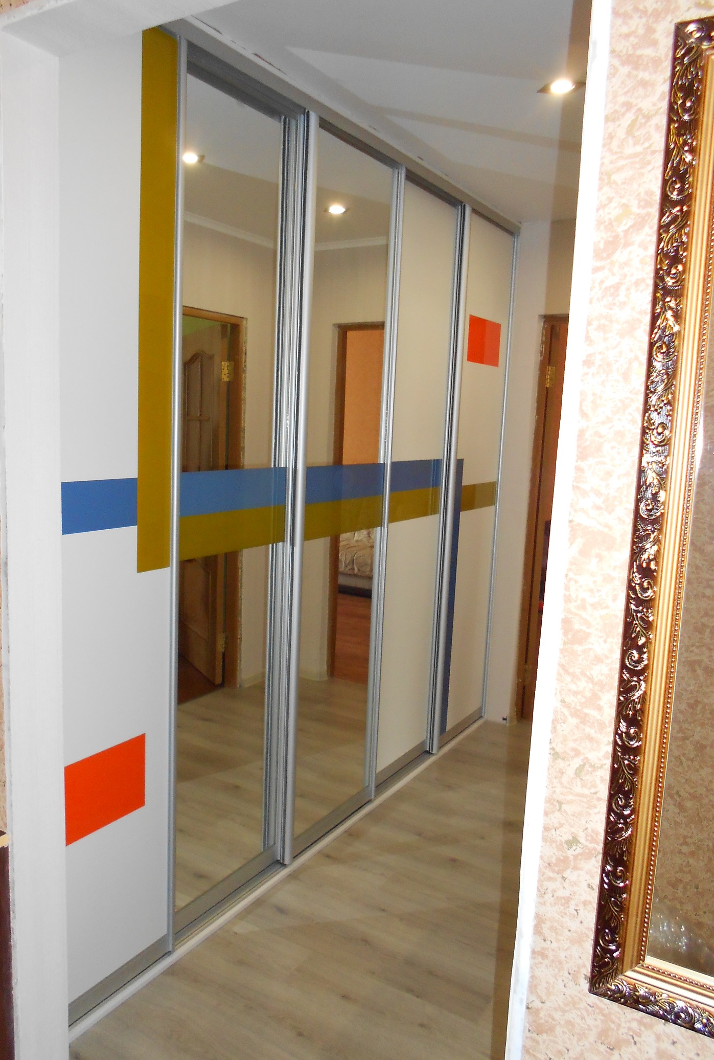 встроенные шкафы- купе для прихожей с подсветкой рисунка фасадов