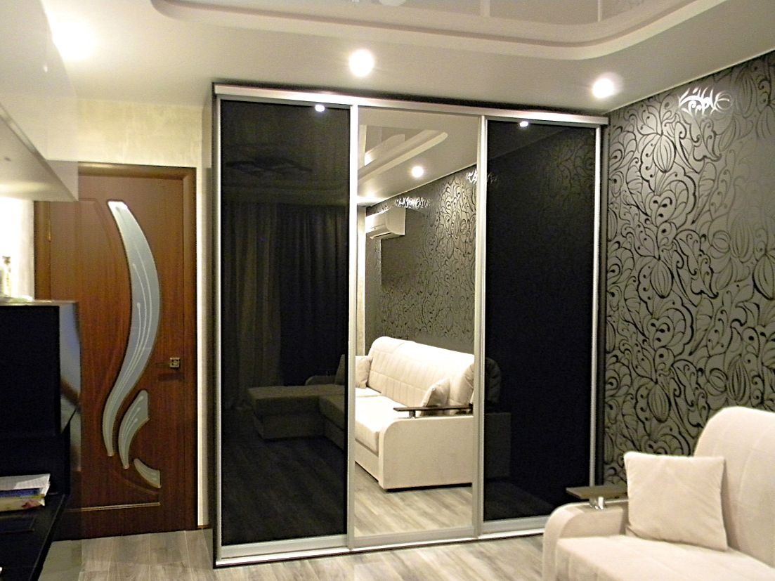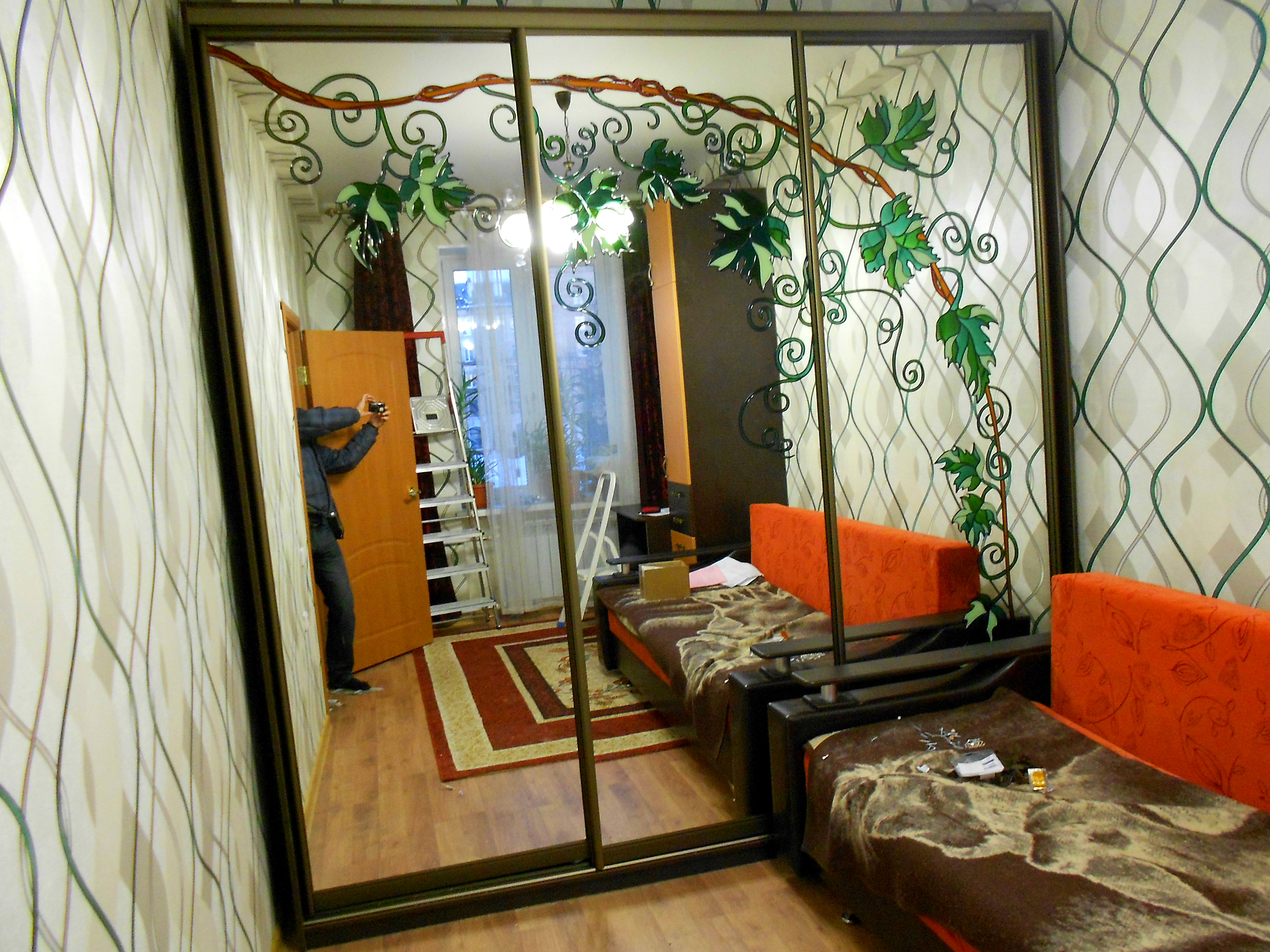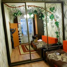 Зеркальный шкаф- купе с алмазной гравировкой в гостиную