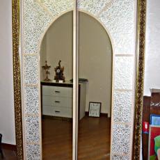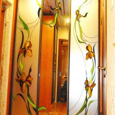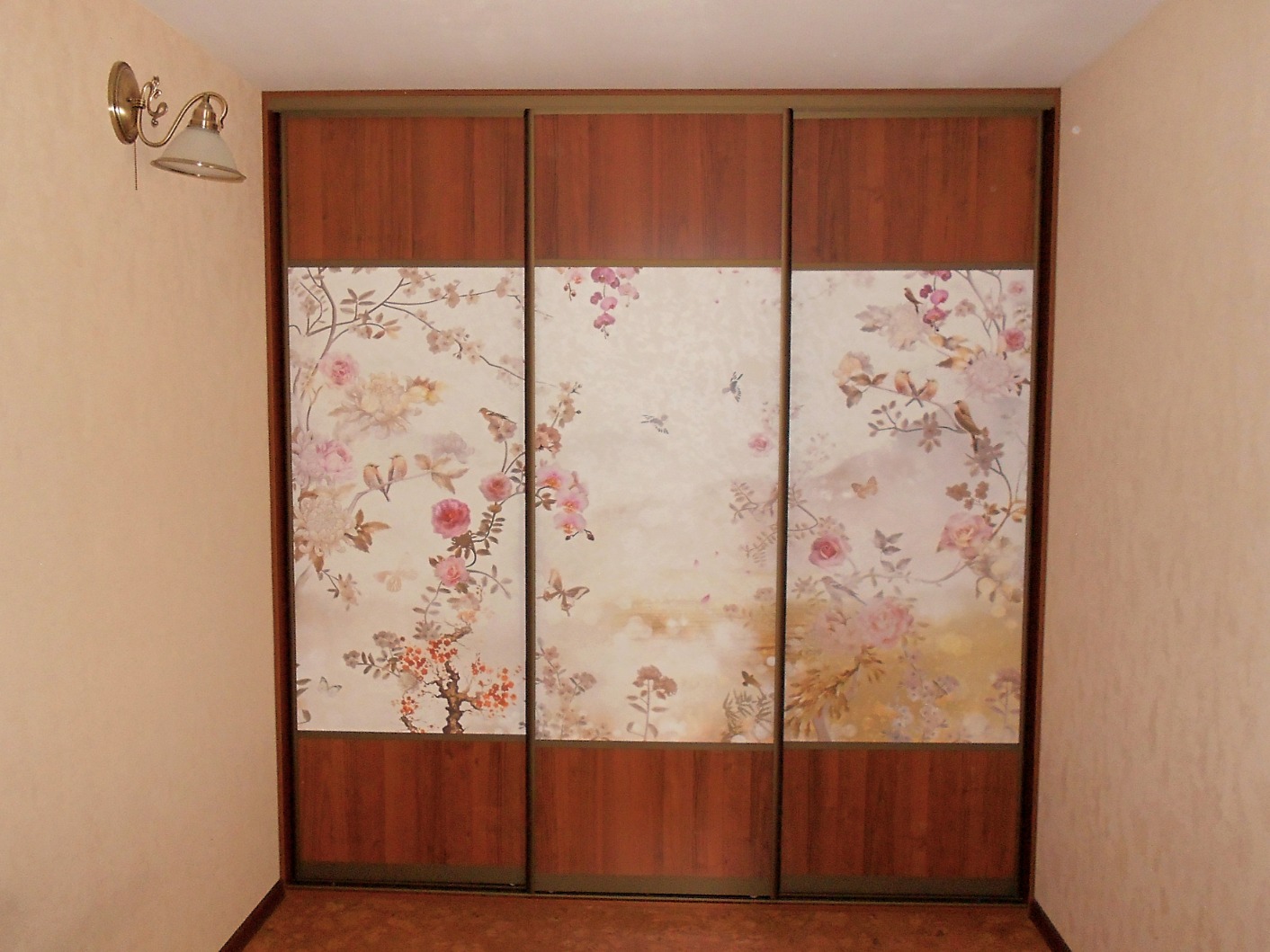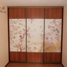 Шкаф-купе трехдверный с витражом для спальной комнаты