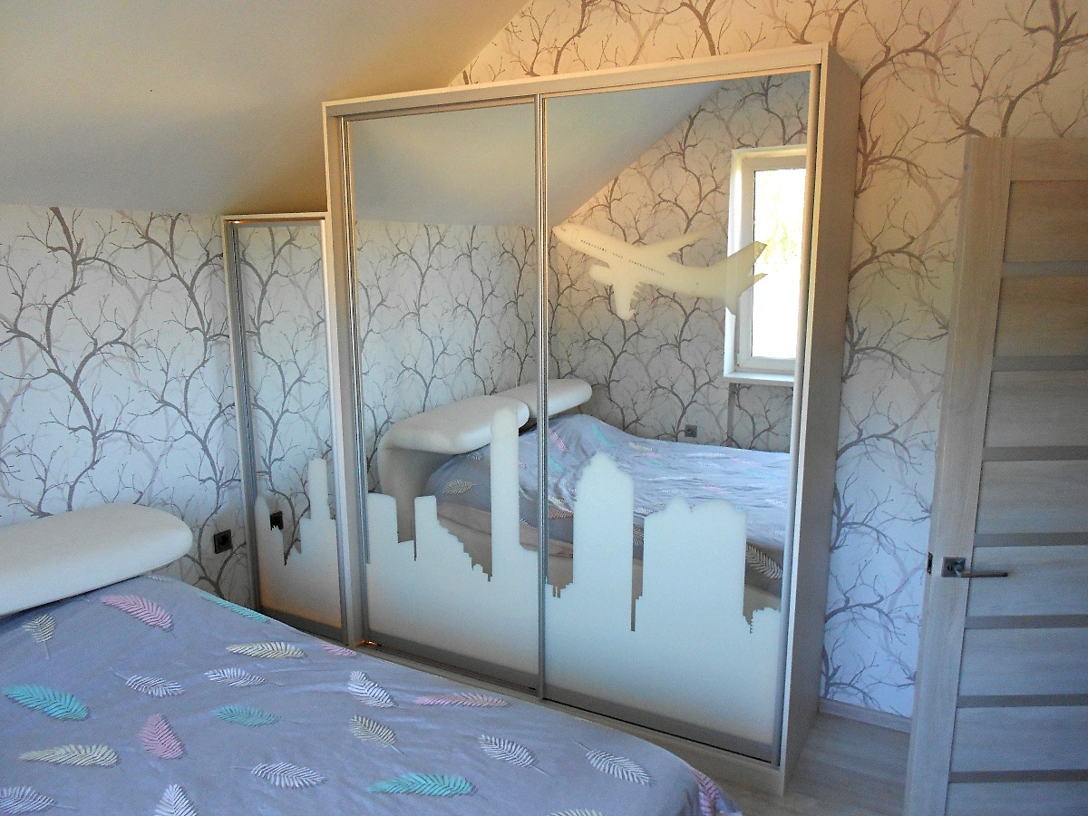 шкаф-купе с двумя комбинированными фасадами для детской комнаты
