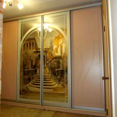 Трехдверный шкаф- купе с подсветкой рисунка в фасадах
