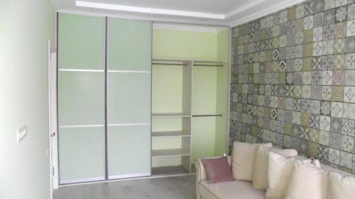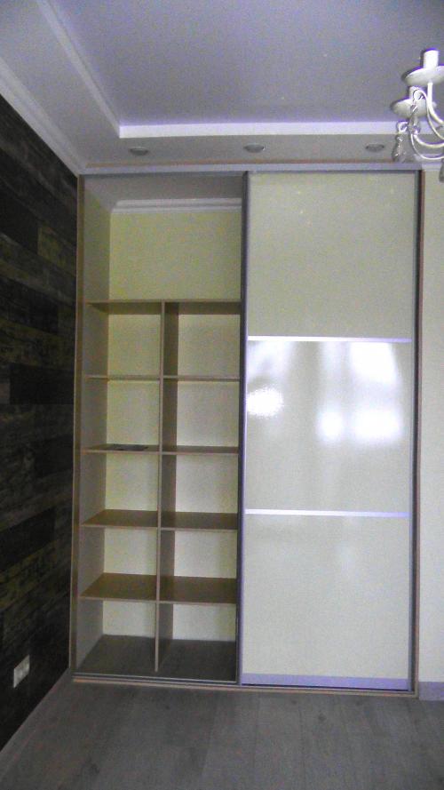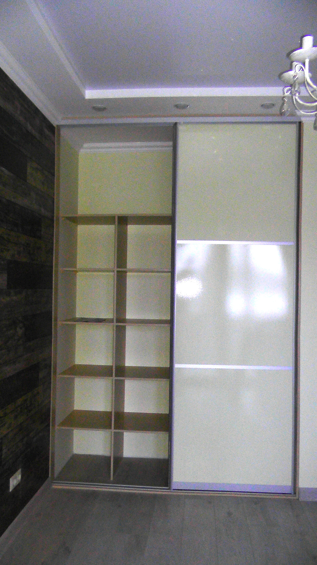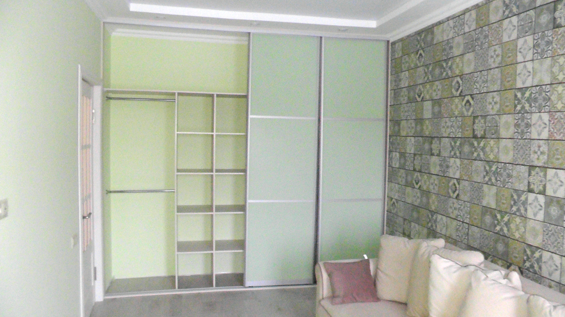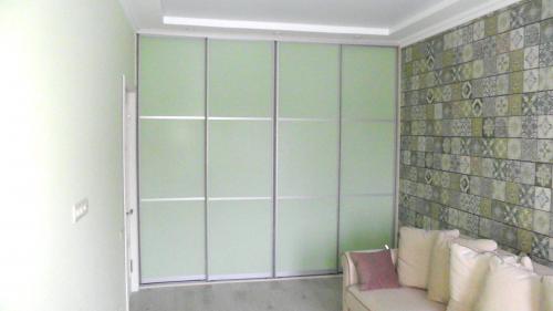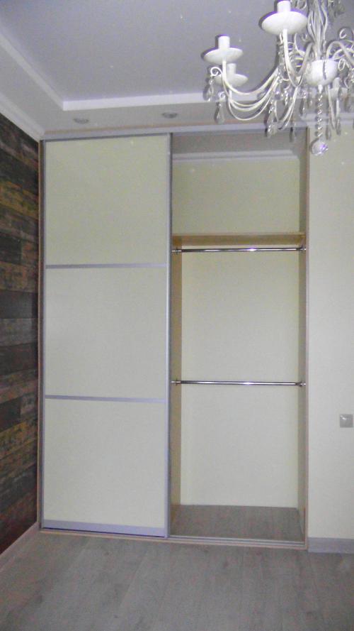 Шкаф- купе двухдверный в спальню: Размеры: Высота: 2 700 Глубина: 690 Дина: 1 750 Фасады: Алюминиевый профиль СЕРЕБРО с делителями, пленка ПВХ глянец на МДФ основе. Корпус: ЛДСП российское. Шкаф-купе четырехдверный в детскую комнату: