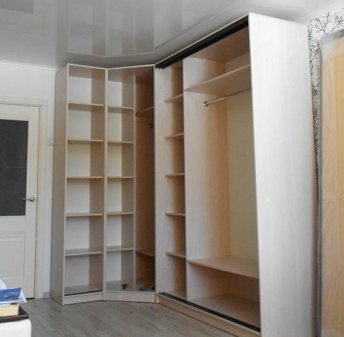 Корпуса: ЛДСП российское. Комплект (слева- направо): Шкаф-пенал с распашным фасадом, шкаф угловой "Пентагон" с распашным фасадом, шкаф-купе.