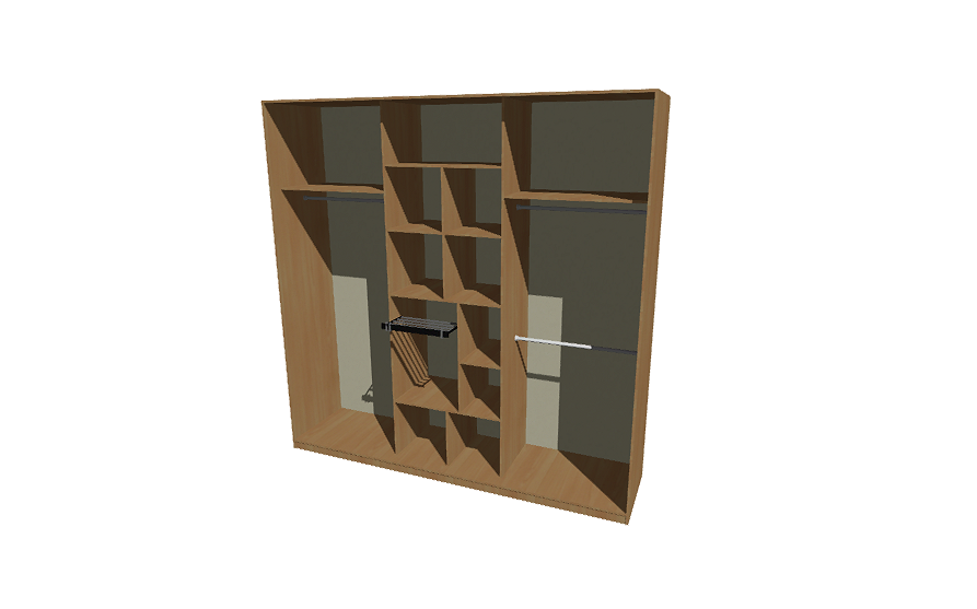 Емкий, удобный шкаф-купе для одежды и белья со множеством полок, штангами для одежды, дорогой брючницей МакМарт и шикарным витражом в фасадах- купе.