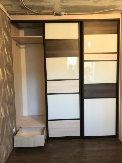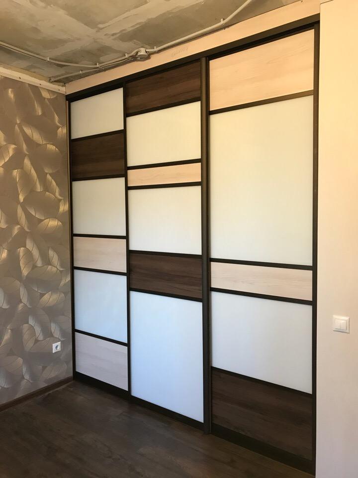 Фасады-купе: Алюминиевый профиль БРОНЗА с делителями, ЛДСП российское.