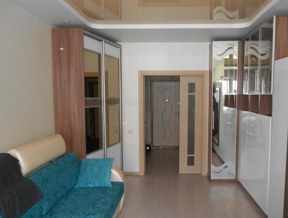 Шкафы в углы комнат. Справа шкаф- купе разнобокий. Его левая боковина меньше по глубине, чем правая. Фасады движутся по диагонали. Справа набор шкафов распашных в угол.