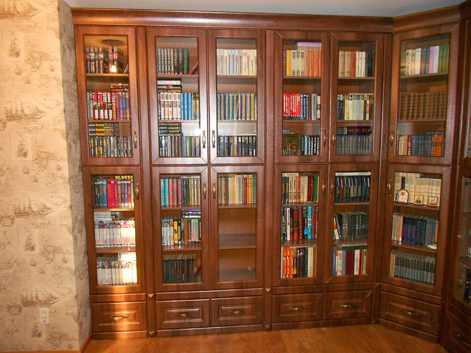 шкаф для книг с распашными фасадами для гостиной
