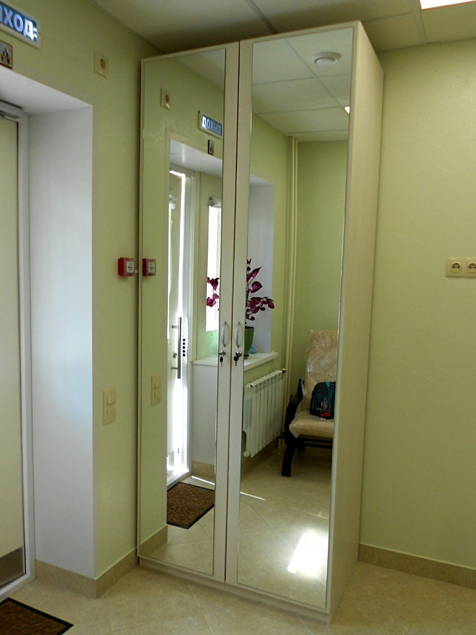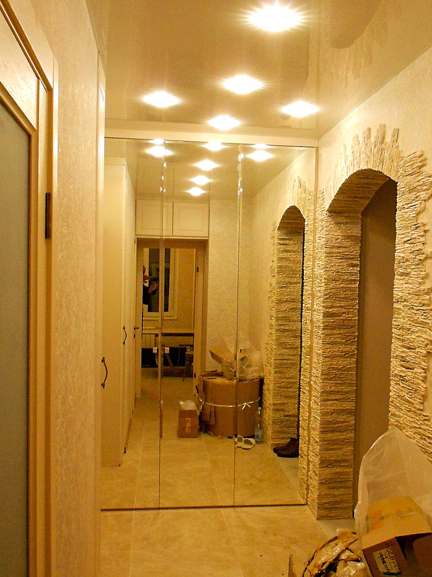 встроенный распашной шкаф с зеркальными фасадами для прихожей