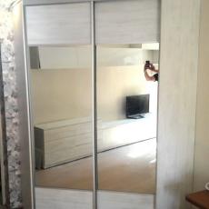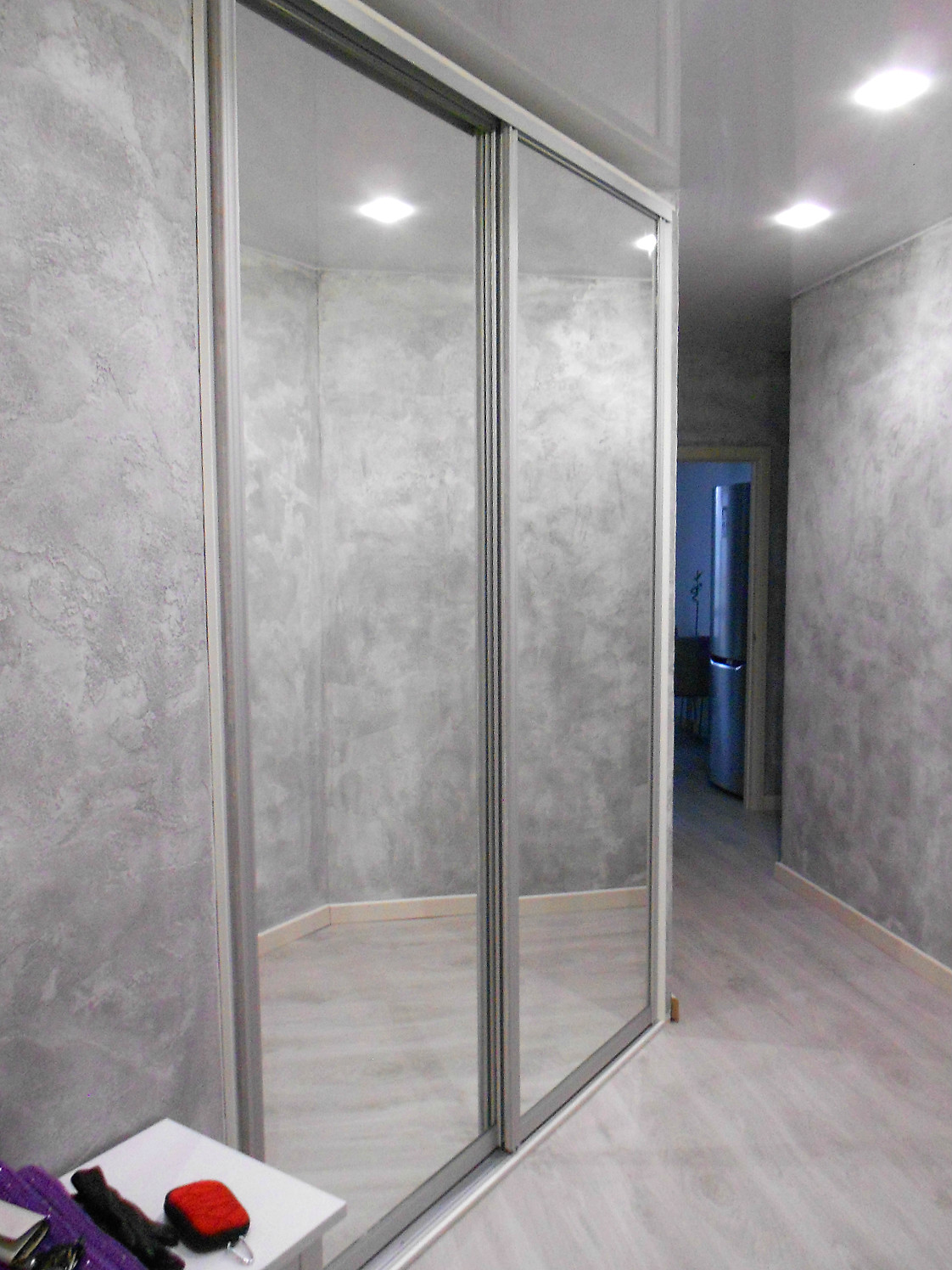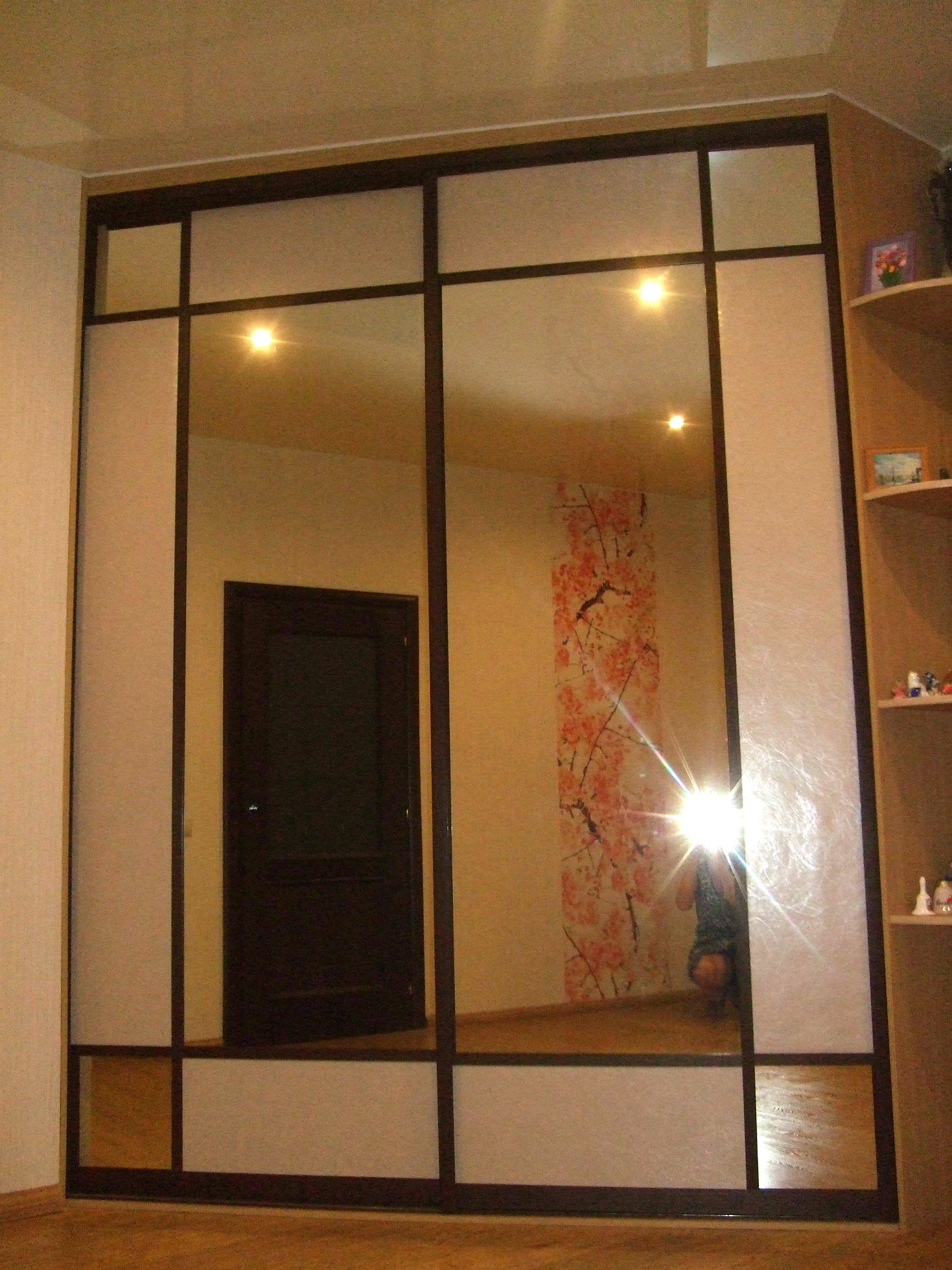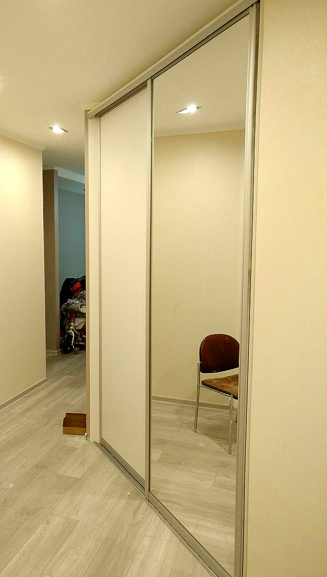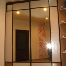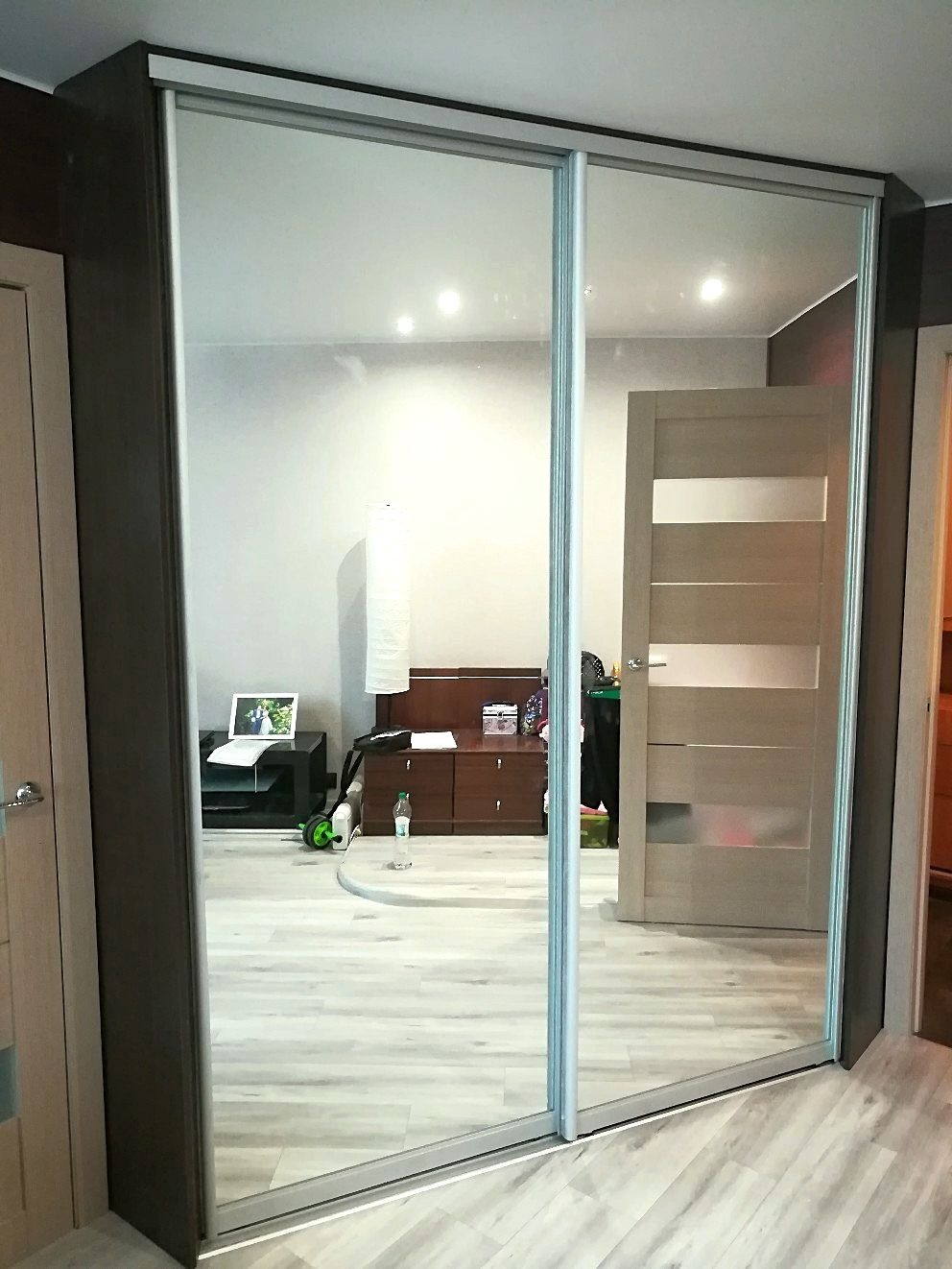 шкаф-купе с зеркальными фасадами для гостиной комнаты