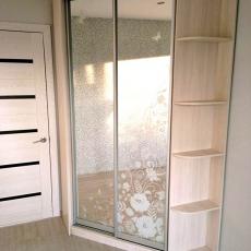 Встроенный шкаф-купе с открытыми скошенными полками для прихожей