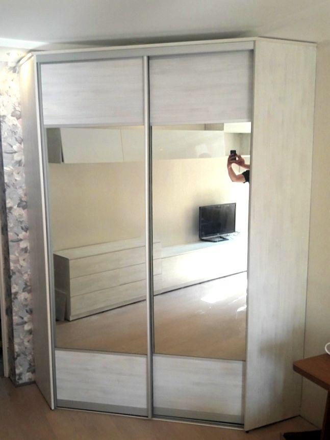 Фасады- купе: алюминиевый профиль с делителями, ЛДСП российское, зеркало СЕРЕБРО.